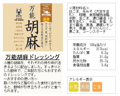 ※終売しました※胡麻の香りとプチプチした食感を活かし、すっきりとした酸味に仕上げました。肉料理にもよく合います。