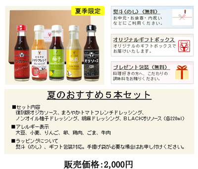オジカソースでは、夏の食卓にぴったりの商品を詰め合わせた、お得な夏ギフトセットを期間限定で販売します。